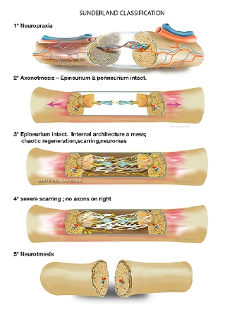 Sunderland expanded the classification system into five degrees of nerve injury, as follows.