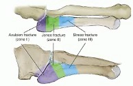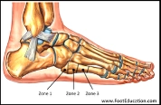 Treatment strategies are best outlined using the Lawrence and Botte classification of fractures. “Zone one, zone two and zone three fractures account for 93%, 4% and 3% of proximal fifth metatarsal fractures, respectively”. (7)